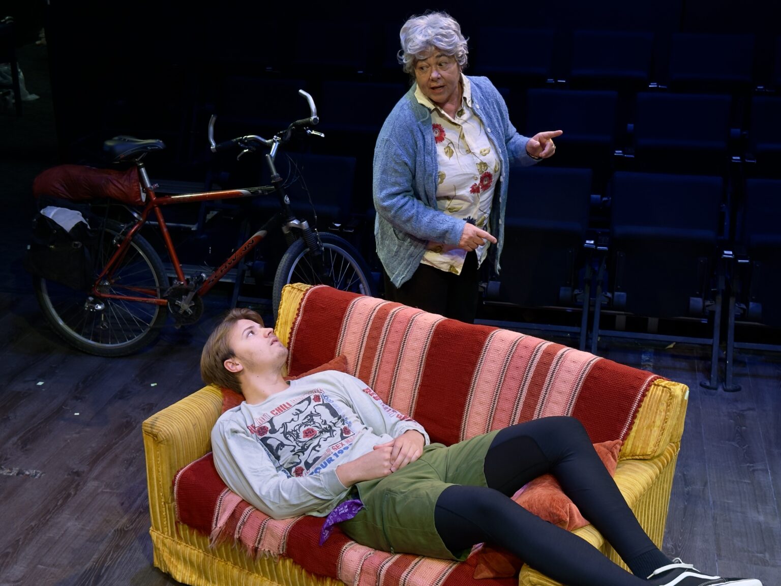 While the title refers to the thousands of miles Leo travels by bicycle across the United States, the play also examines distance in a more personal sense: the emotional and relational distances that separate people even when they share the same space. Actor Carrie Lund Cacioppo, who plays Vera, said the generational divide between the two characters is central to the story.